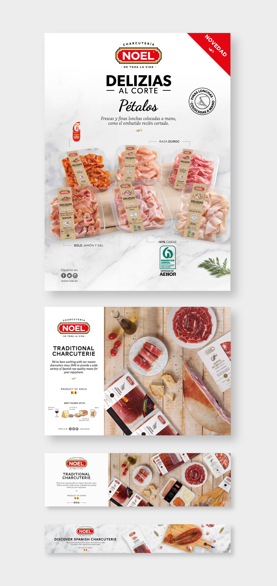 Disseny, direcció d’art i art finalista per a la marca Noel i submarques del grup corporatiu: disseny de packaging de les gammes de producte, etiquetes, catàlegs, campanyes digitals, fotomontatges, merchandising, disseny d’stands, entre altres.